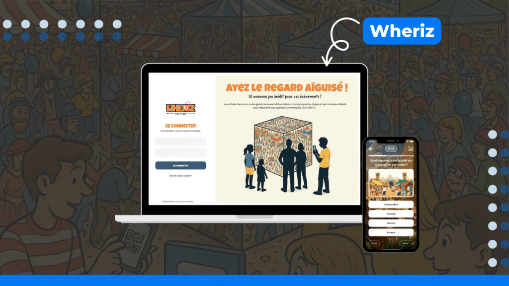 Wheriz est une plateforme de jeu sous forme d’application mobile permettant aux professionnels de l’événementiel et du loisir de pouvoir proposer une expérience unique et interactive à leurs clients.